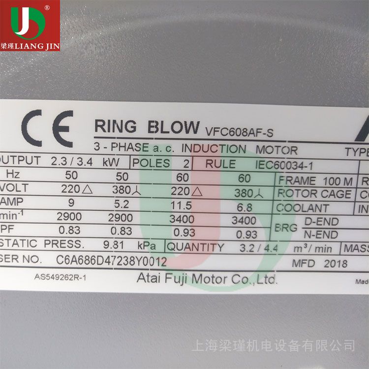 原厂富士鼓风机VFC608AF-S产品介绍--上海梁瑾机电设备有限公司提供,富士风泵为一低压高流量(相较真空泵)之产品,可当一般吹吸两用气泵使用,风泵在国外一般又称为再生式风机(REGENERATIVE BLOWER)、旋转风机(VORTEX BLOWER)及侧风道风机(SIDE-CHANNEL BLOWER),这些名称均依其实际之运作原理命名的。 风泵基本上由叶轮及转轴结合并以3600RPM高速运转,叶轮之外环是由许多放射状叶片组成,介于前盖与机座间,外环叶片则在风道间(也因此命名为侧风道风机)。